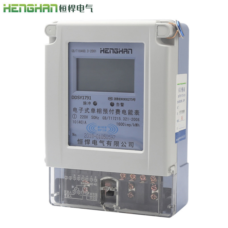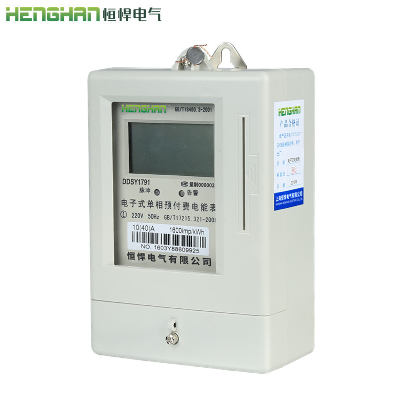 恒悍單相預付費電表型號證...